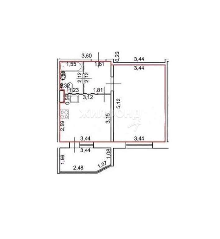 Общая площадь (без балкона) - 35,3 м2. Кухня -10,8 м2. Комната -17,6 м2.