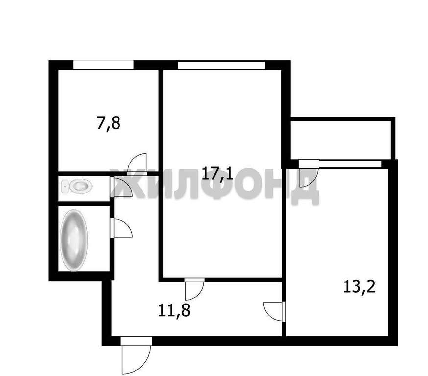 Комнаты изолированные (17,1м2; 13,2м2) .